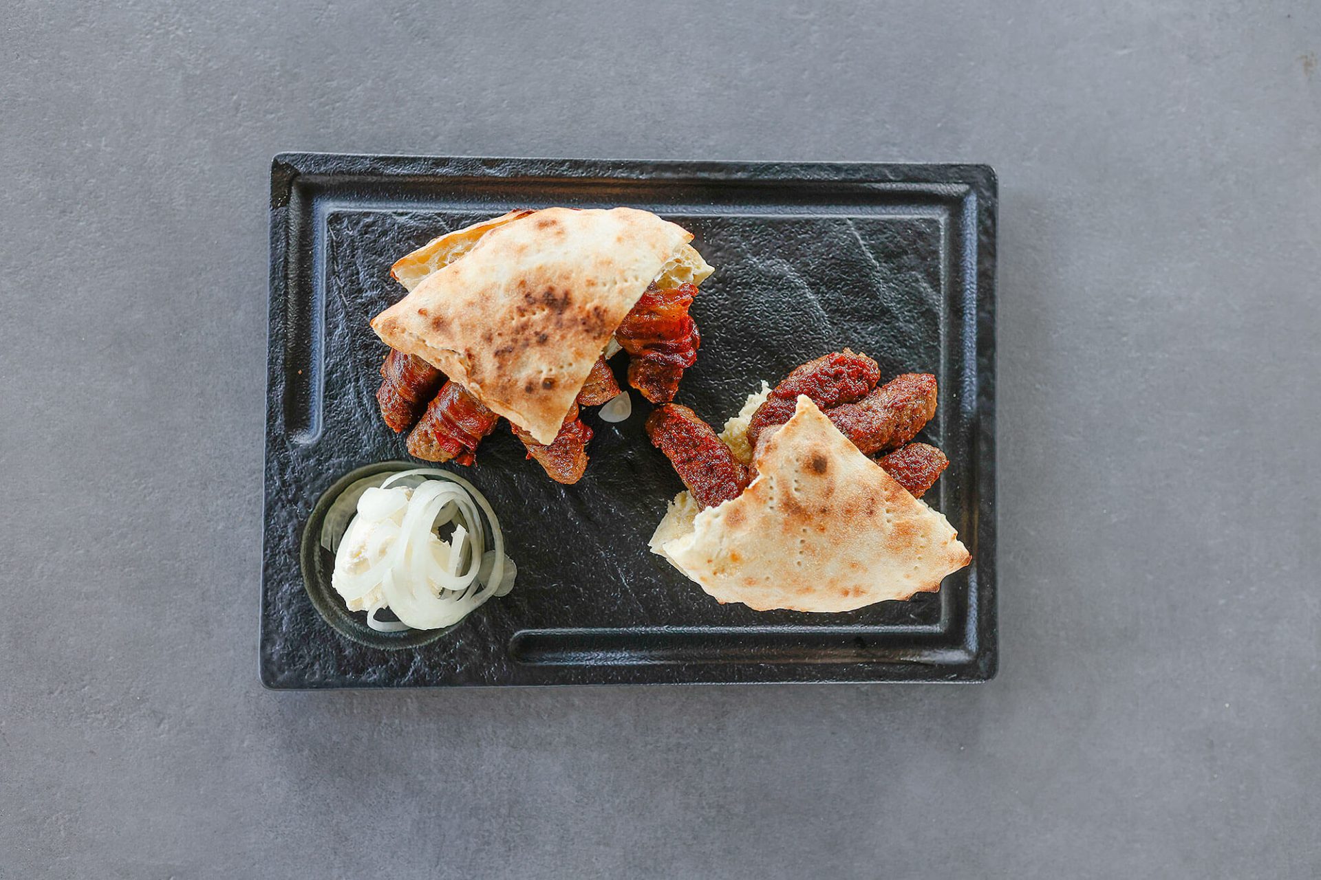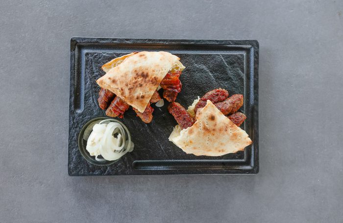 (mljevena junetina, kajmak, pečena paprika, tucana ljuta paprika, lepinja)